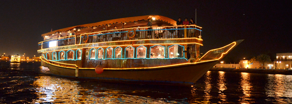A friendly driver will pick you up at your hotel and take you to the creek, where you will board a traditional Arabic dhow, typical waterborne vessels of the Persian Gulf traditionally used by pearl fishers.